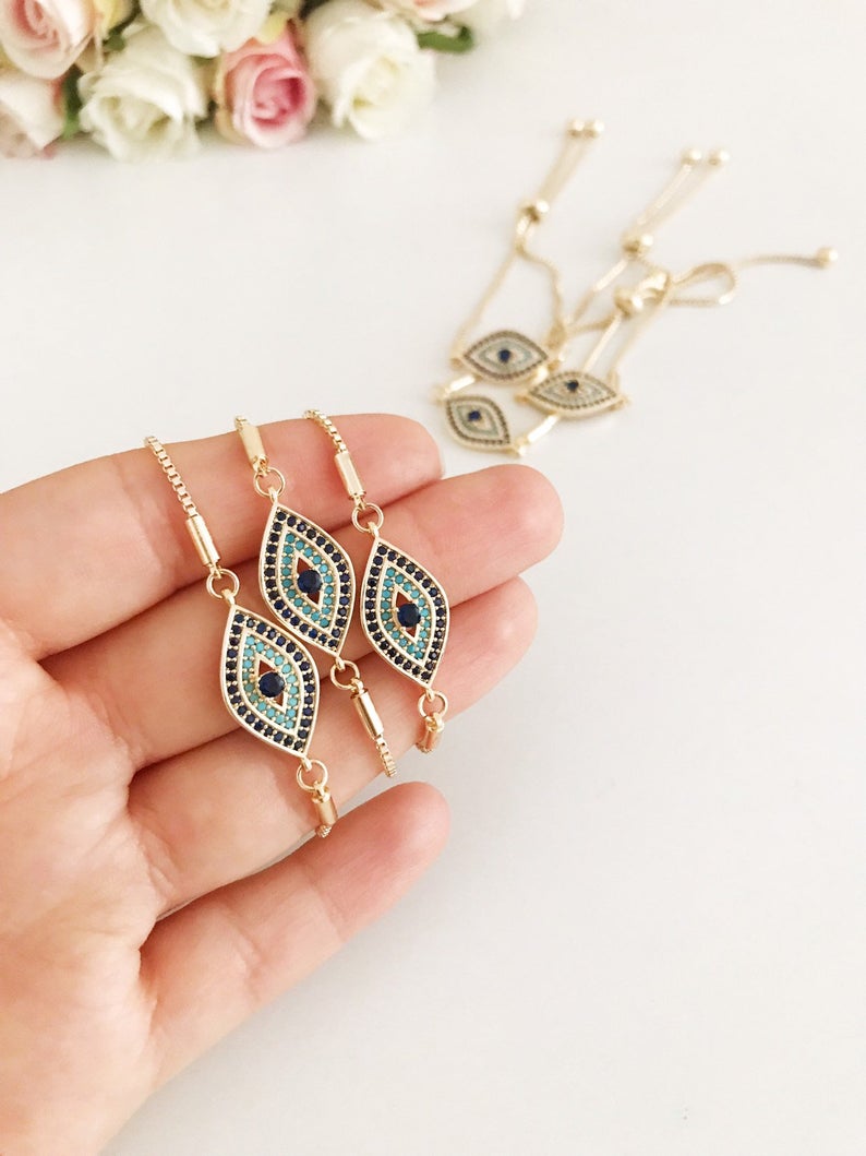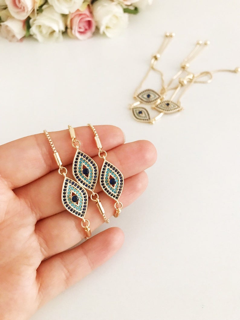Gold evil eye bracelet, evil eye charm bracelet, adjustable evil eye bracelet, blue evil eye beads, minimalist bracelet, greek eye jewelry