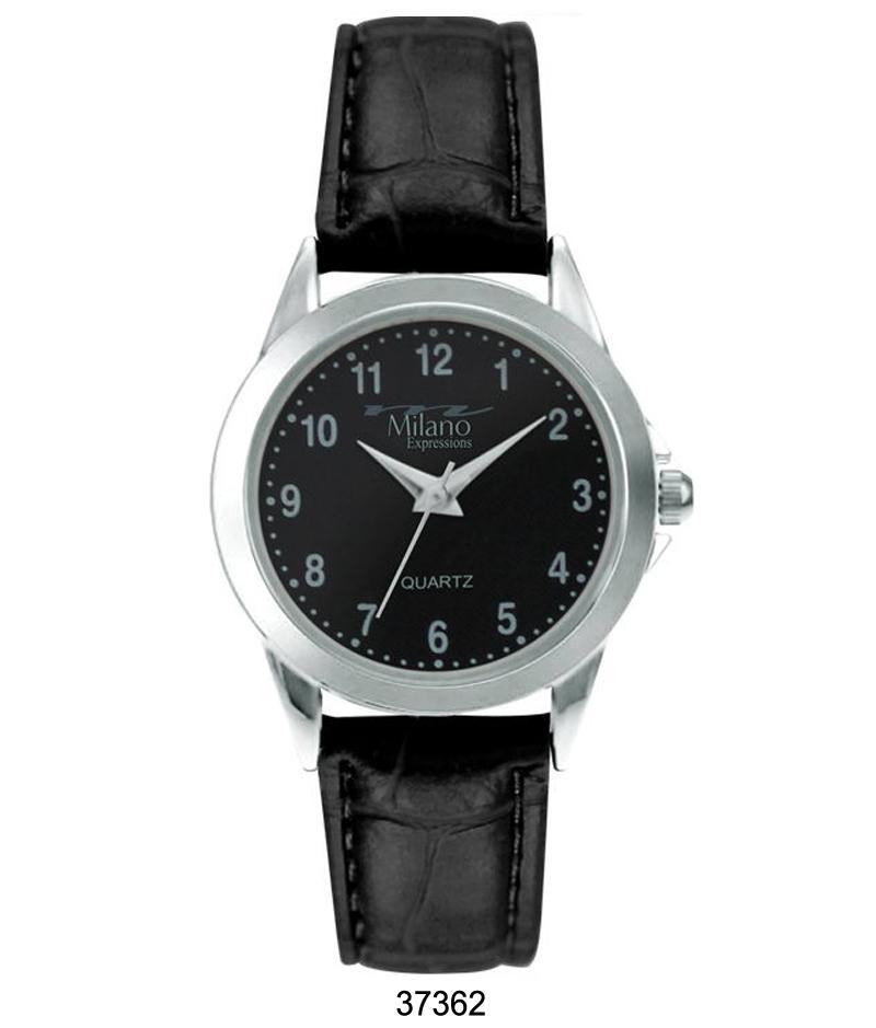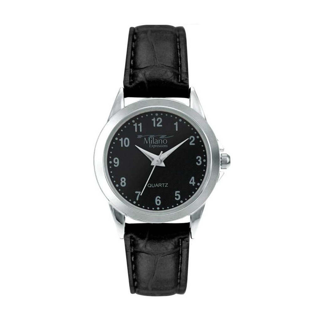 M Milano Expressions Black Faux Leather Strap Watch, Silver Case, White Dial